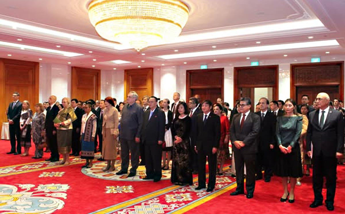 ທ່ານ ທອງລຸນ ສີສຸລິດປະທານປະເທດ ພ້ອມດ້ວຍການນຳຂັ້ນສູງພັກ-ລັດຂອງ ສປປ ລາວໄດ້ຕ້ອນຮັບບັນດາທູຕານຸທູດ ແລະ ຜູ້ຕາງໜ້າອົງການຈັດຕັ້ງສາກົນ ປະຈຳ ສປປ ລາວ ເຂົ້າອວຍພອນເນື່ອງໃນໂອກາດວັນສະຖາປະນາ ສປປ ລາວ ຄົບຮອບ 48 ປີ ແລະ ປີໃໝ່ສາກົນ 2024, ໃນວັນທີ 1 ທັນວາ ນີ້ ທີ່ຫໍສະພາແຫ່ງຊາດ.