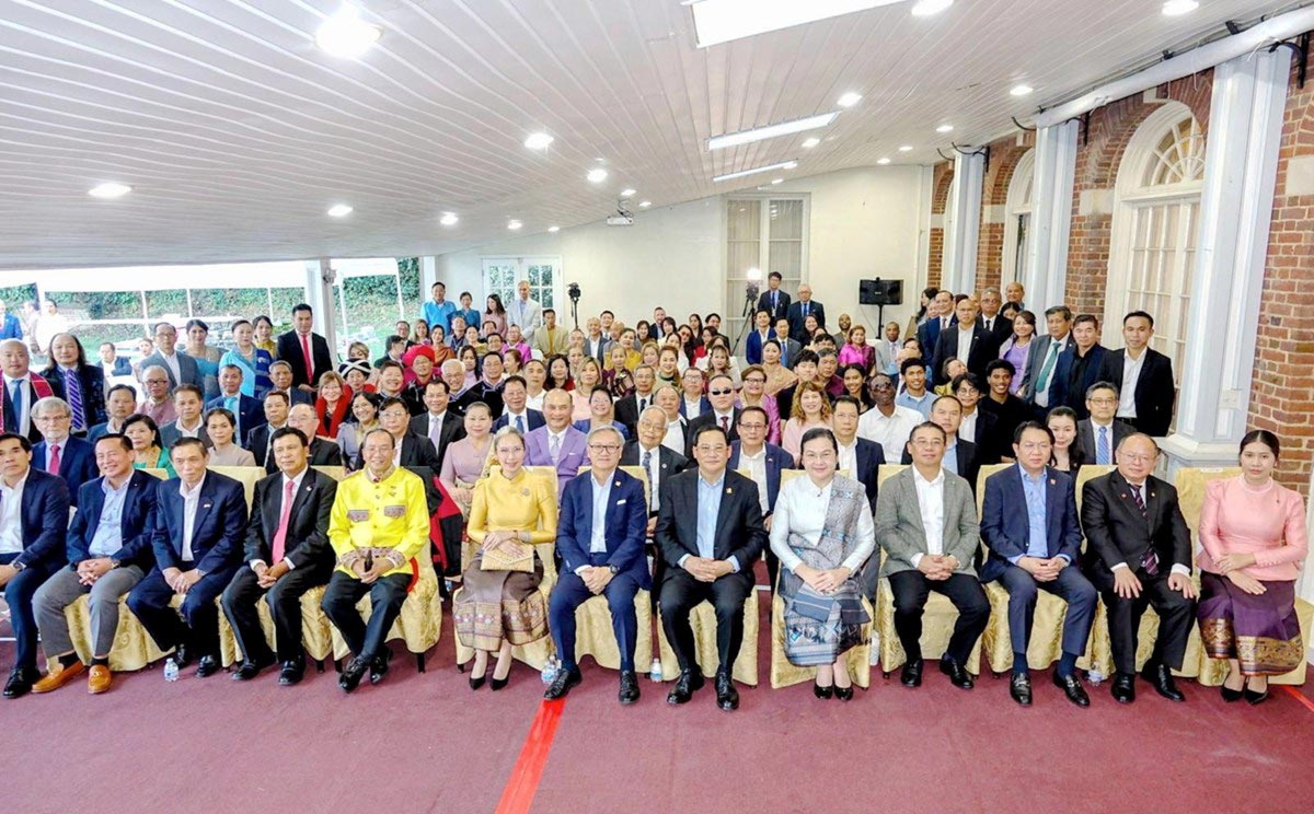 ໃນໂອກາດທີ່ ພະນະທ່ານນາຍົກລັດຖະມົນຕີແຫ່ງ ສປປ ລາວ ໄດ້ເຄື່ອນໄຫວຢ້ຽມຢາມເຮັດວຽກ ຢູ່ນະຄອນຫຼວງວໍຊິງຕັນ ດີ.ຊີ ສະຫະລັດ ອາເມຣິກາ ລະຫວ່າງວັນທີ 27-30 ກັນຍາ 2025, ສະຖານເອກອັກຄະລັດຖະທູດແຫ່ງ ສປປ ລາວ ທີ່ນະຄອນຫຼວງວໍຊິງຕັນ ດີ.ຊີ ໄດ້ຈັດງານພົບປະພີ່ນ້ອງຄົນເຊື້ອຊາດລາວຂຶ້ນໃນຕອນແລງຂອງວັນທີ 28 ກັນຍາ 2025 ໂດຍໃຫ້ກຽດເຂົ້າຮ່ວມຂອງ ພະນະທ່ານ ສອນໄຊ ສີພັນດອນ ນາຍົກລັດຖະມົນຕີແຫ່ງ ສປປ ລາວ ໂດຍມີ ທ່ານລັດຖະມົນຕີກະຊວງການຕ່າງປະເທດ, ທ່ານຮອງລັດຖະມົນຕີ ແລະ ຄະນະຕິດຕາມ, ທ່ານເອກອັກຄະລັດຖະທູດ ພ້ອມດ້ວຍພະນັກງານສະຖານທູດ ແລະ ພີ່ນ້ອງຄົນເຊື້ອຊາດລາວ ທີ່ດຳລົງຊີວິດຢູ່ ສະຫະລັດ ອາເມລຣິກາ ແລະ ການາດາ ປະມານ 250 ທ່ານເຂົ້າຮ່ວມ.