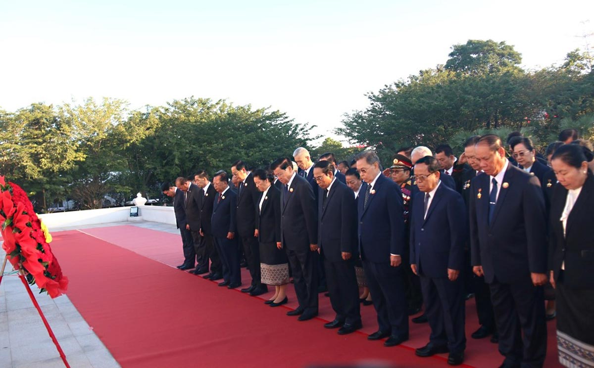 ການນໍາຂັ້ນສູງຂອງພັກ-ລັດ ຂອງ ສາທາລະນະລັດ ປະຊາທິປະໄຕ ປະຊາຊົນລາວ (ສປປ ລາວ) ນໍາໂດຍ ສະຫາຍ ທອງລຸນ ສີສຸລິດ ເລຂາທິການໃຫຍ່ ຄະນະບໍລິຫານງານສູນກາງພັກ ປະທານປະເທດ ໄດ້ເຂົ້າວາງພວງມາລາ ຢູ່ອານຸສາວະລີນັກຮົບນິລະນາມແລະ ເຂົ້າວາງກະຕ່າດອກໄມ້ ຢູ່ໜ້າຮູບປັ້ນຫຼໍ່ຂອງ ປະທານ ໄກສອນ ພົມວິຫານ ຢູ່ຫໍພິພິທະພັນ ໄກສອນ ພົມວິຫານ ໃນຕອນເຊົ້າວັນທີ 1 ທັນວາ 2025, ເນື່ອງໃນໂອກາດສະເຫຼີມສະຫຼອງວັນສາຖາປະນາ ສປປ ລາວຄົບຮອບ 50 ປີ (2ທັນວາ 1975 – 2 ທັນວາ 2025) ແລະວັນເກີດຂອງປະທານ ໄກສອນ ພົມວິຫານ ຄົບຮອບ 105 ປີ (13 ທັນວາ 1920 – 13 ທັນວາ 2025).