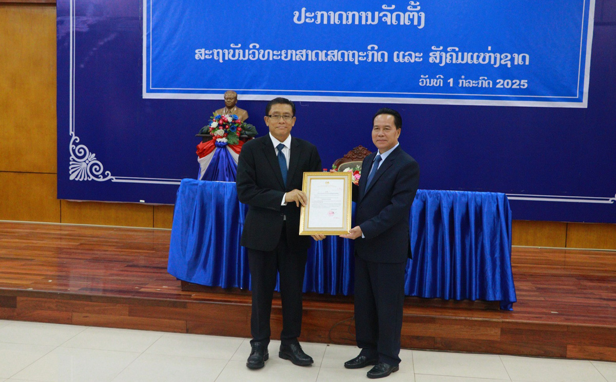 ສະຖາບັນວິທະຍາສາດເສດຖະກິດ ແລະ ສັງຄົມແຫ່ງຊາດ (ສວສສຊ) ຈັດພິທີປະກາດການຈັດຕັ້ງໃນວັນທີ 1 ກໍລະກົດນີ້ ທີ່ ສວສສຊ ໂດຍມີ ທ່ານ ກອງແກ້ວ ໄຊສົງຄາມ ປະທານສະຖາບັນວິທະຍາສາດເສດຖະກິດ ແລະ ສັງຄົມແຫ່ງຊາດ ພ້ອມດ້ວຍຮອງປະທານ ແລະ ພະນັກງານຫຼັກແຫຼ່ງເຂົ້າຮ່ວມ.