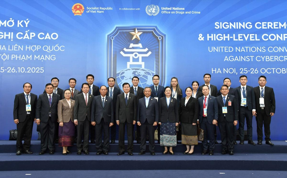 ໃນພິທີຄັ້ງນີ້, ທ່ານ ພົອ ວິໄລ ຫຼ້າຄໍາຟອງ ຮອງນາຍົກລັດຖະມົນຕີ ລັດຖະມົນຕີ ກະຊວງປ້ອງກັນຄວາມສະຫງົບ, ໄດ້ຕາງໜ້າໃຫ້ລັດຖະບານ ສປປ ລາວ ລົງນາມໃນສົນທິສັນຍາດັ່ງກ່າວ ພ້ອມທັງຂຶ້ນກ່າວຄໍາເຫັນໃນກອງປະຊຸມຂັ້ນສູງ ໂດຍໄດ້ສະແດງຄວາມຊົມເຊີຍ ຕໍ່ລັດຖະບານ ສສ ຫວຽດນາມ ທີ່ເປັນເຈົ້າການໃນຕະຫຼອດຂະບວນຮ່າງສົນທິສັນຍາສະບັບນີ້ ຊຶ່ງເລີ່ມແຕ່ປີ 2019 ເປັນຕົ້ນມາ ທັງເປັນເຈົ້າພາບຈັດພິທີລົງນາມ ຊຶ່ງເປັນເຄື່ອງມືດ້ານກົດໝາຍສາກົນ ເພື່ອຕ້ານກັບອາຊະຍາກໍາທາງໄຊເບີ. ເຫດການດັ່ງ ກ່າວ ຍັງເປັນການພິສູດໃຫ້ເຫັນເຖິງຄວາມເຊື່ອໝັ້ນຂອງວົງຄະນະຍາດສາກົນ ທີ່ມີຕໍ່ປະເທດເພື່ອນມິດອາ ຊຽນ ຊຶ່ງສອດຄ່ອງກັບຍຸດທະສາດ ວ່າດ້ວຍການຫັນເປັນດີຈີຕອນຂອງພາກພື້ນ ແລະ ສະແດງໃຫ້ເຫັນເຖິງຄວາມຕັດສິນໃຈຮ່ວມກັນຂອງວົງຄະນະຍາດສາກົນ ໃນການສົ່ງເສີມການນຳໃຊ້ເຕັກໂນໂລຊີຂໍ້ມູນຂ່າວ ສານ ແລະ ການສື່ສານ ທີ່ມີຄວາມປອດໄພ ເພື່ອຮັບໃຊ້ການພັດທະນາເສດຖະກິດ-ສັງຄົມ, ພ້ອມທັງຮ່ວມກັນສະກັດກັ້ນ ອາຊະຍາກຳທາງໄຊເບີ ແລະ ຮັບປະກັນຄວາມໝັ້ນຄົງ ຂອງບັນດາປະເທດໃນພາກພື້ນ ແລະ ໃນໂລກ.
