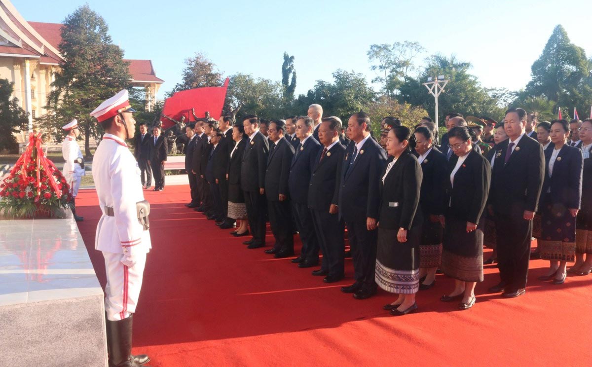 ການນໍາຂັ້ນສູງຂອງພັກ-ລັດ ຂອງ ສາທາລະນະລັດ ປະຊາທິປະໄຕ ປະຊາຊົນລາວ (ສປປ ລາວ) ນໍາໂດຍ ສະຫາຍ ທອງລຸນ ສີສຸລິດ ເລຂາທິການໃຫຍ່ ຄະນະບໍລິຫານງານສູນກາງພັກ ປະທານປະເທດ ໄດ້ເຂົ້າວາງພວງມາລາ ຢູ່ອານຸສາວະລີນັກຮົບນິລະນາມແລະ ເຂົ້າວາງກະຕ່າດອກໄມ້ ຢູ່ໜ້າຮູບປັ້ນຫຼໍ່ຂອງ ປະທານ ໄກສອນ ພົມວິຫານ ຢູ່ຫໍພິພິທະພັນ ໄກສອນ ພົມວິຫານ ໃນຕອນເຊົ້າວັນທີ 1 ທັນວາ 2025, ເນື່ອງໃນໂອກາດສະເຫຼີມສະຫຼອງວັນສາຖາປະນາ ສປປ ລາວຄົບຮອບ 50 ປີ (2ທັນວາ 1975 – 2 ທັນວາ 2025) ແລະວັນເກີດຂອງປະທານ ໄກສອນ ພົມວິຫານ ຄົບຮອບ 105 ປີ (13 ທັນວາ 1920 – 13 ທັນວາ 2025).