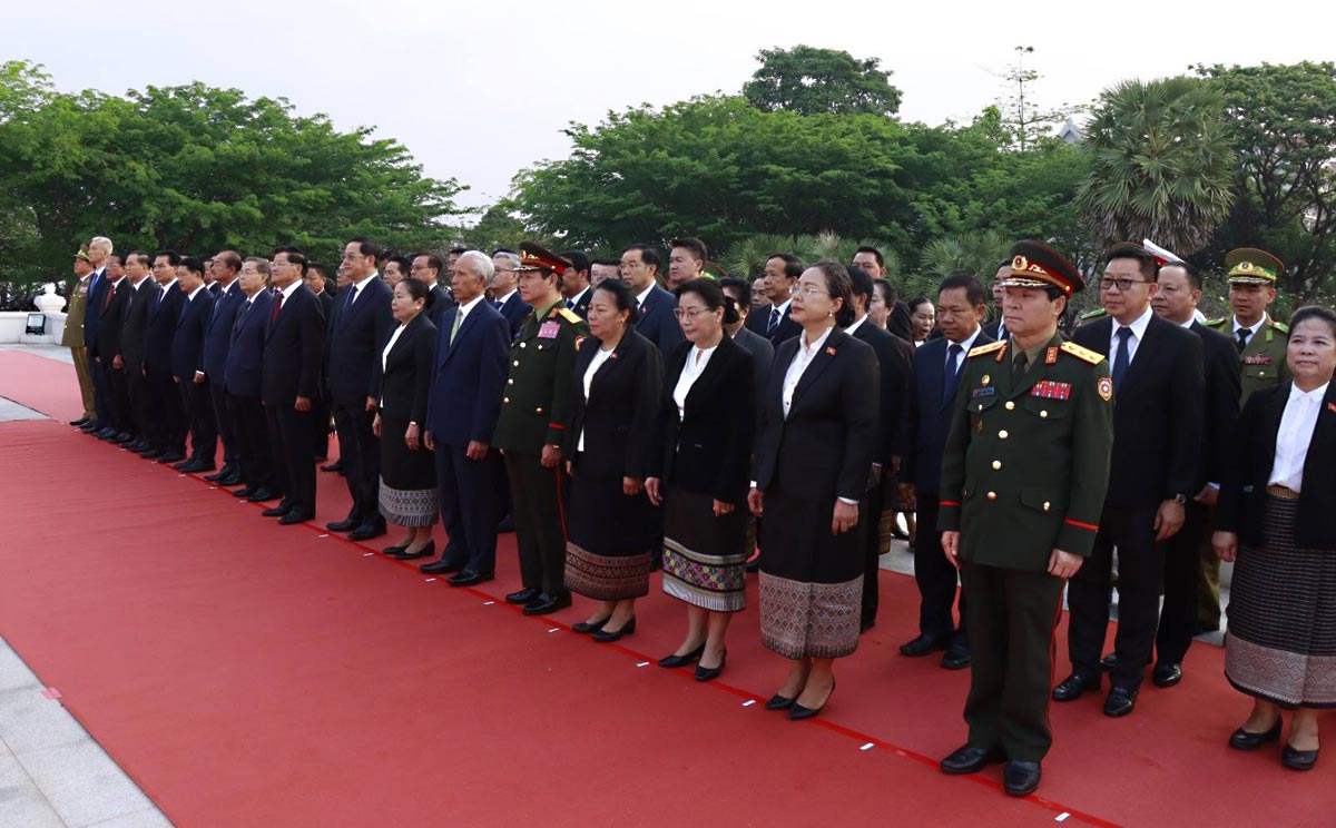 ການນຳ ພັກ-ລັດ ວາງພວງມາລາ ໂອກາດ ວັນສ້າງຕັ້ງພັກ ປປ ລາວ ຄົບຮອບ 71 ປີ